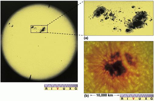 Sunspots are regions of the Sun's photosphere that are slightly cooler than the remaining photosphere, and hence appear darker (Stephan's law).
