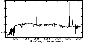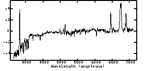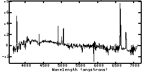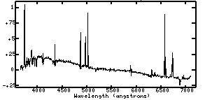 As you are classifying these spectra, you won't be able to identify the elements responsible for the emission and absorption lines. For reference, then, note the approximate wavelengths of the key features you are using to classify. No doubt you will want to note if the features are in emission or absorption. Again, keep in mind that your sequence need not have 9 separate categories if you do not think you can tell the difference between some of the galaxies' on the basis of their spectra.