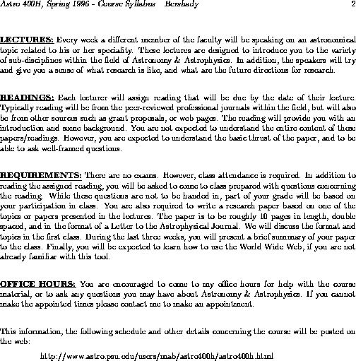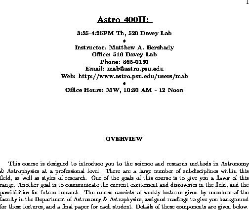 Honors Seminar in Astronomy & Astrophysics