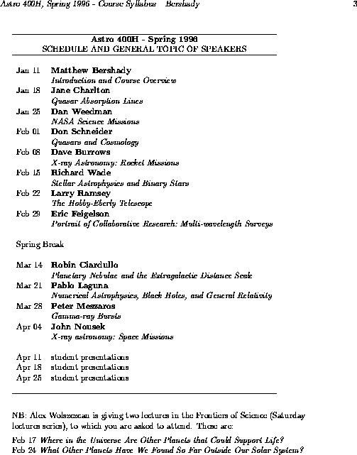 Schedule of Lectures