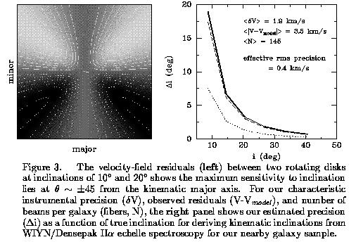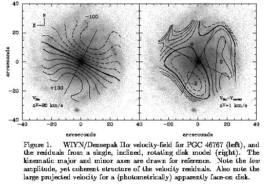 (b) Determining accurate inclincations for nearly face-on systems: The party-line in the kinematics game has been that inclinations cannot be detemined reliably from kinematics for galaxies with true inclinations under 40 degrees. We believe this was simply a historical artifact of poor data quality based on previous generations of HI surveys. We have found that the quality of our optical H-alpha echelle kinematic data is sufficiently high that we can accurately determine kinematic inclincation angles to 15-20 degrees (from Bershady & Andersen 1999). This opens the possibility of using such data to determine the intrinsic ellipticity of spiral disks, to study the Tully-Fisher relation in face-one galaxies, and to measure both rotation speed and vertical velocities of matter in disks.